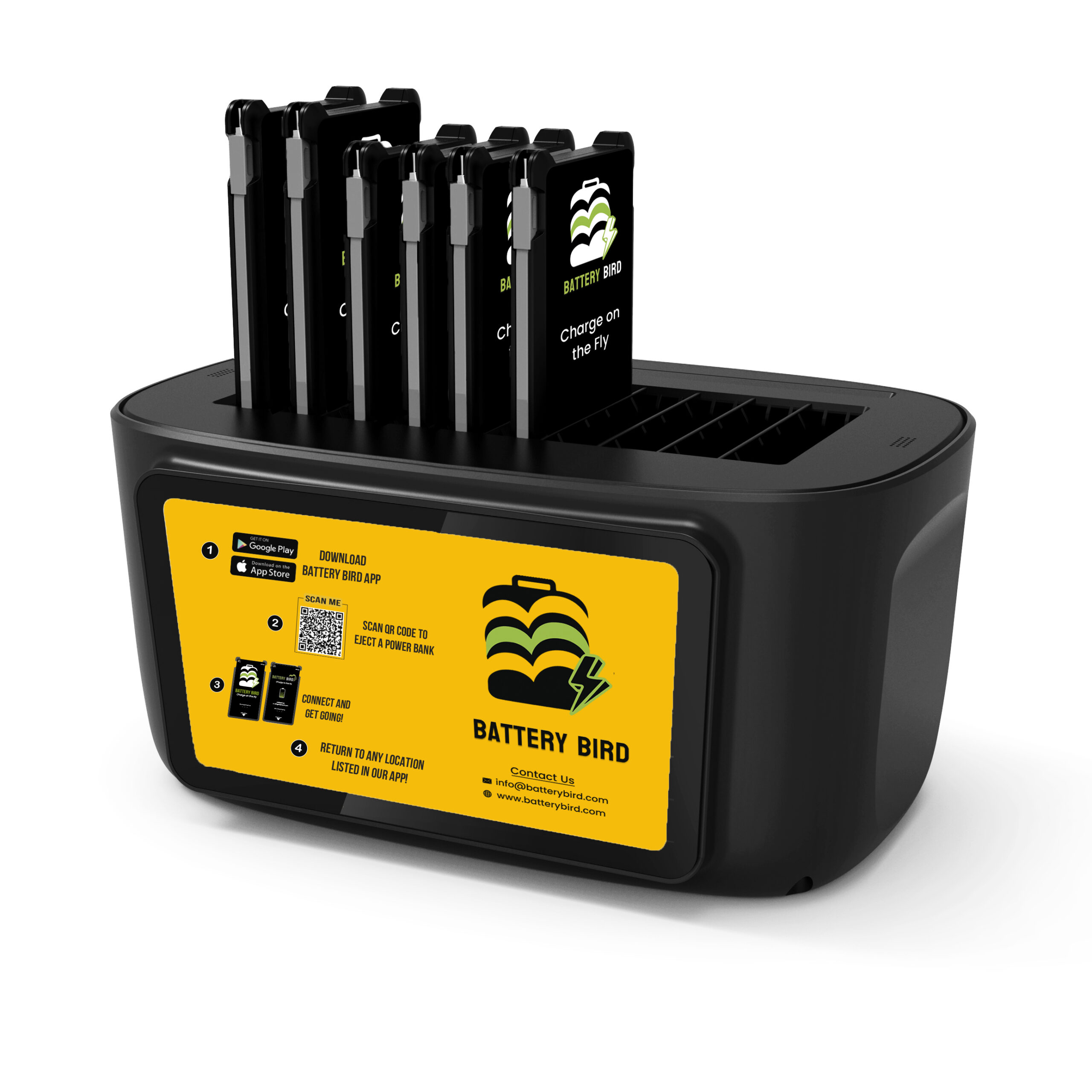 Battery Bird adalah sistem Penyewaan Powerbank yang memungkinkan pengguna